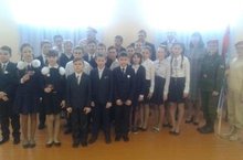 1 нче февраль көнне мәктәбебезнең 4,5,6 укучылары "Юнармия" хәрәкәтенә кушылдылар, 10 укучының кулына "Юнармия" таныклыгы тапшырылды 01.02.2018