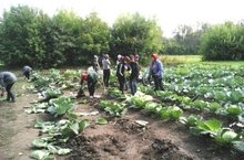 Мәктәп бакчасында югары сыйныф укучылары кәбестә алалар 08.09.2017
