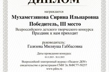 Сиринә исемле кызыбыз" Педагог ДОУ"Бөтенроссия электрон журналы оештырган конкурста катнашып дипломга ия булды.Котлыйбыз! 14.12.2015