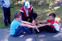 Лагерьга балалар белән очрашуга Әтнә районы электр челтәре хезмәткәрләре килде.Алар электр куркынычсызлыгы кагыйдәләрен кабат искәртеп киттеләр, викторина һәм ярышлар уздырдылар, бүләкләр дә тапшырдылар. Очрашу күңелле һәм бик эчтәлекле булды.