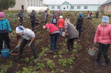 Елдагыча укучылар һәм укытучылар тырышлыгы белән үстерелгән бәрәңгедән, мул уңыш җыеп алынды.