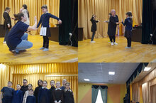13 февраль көнне мәктәбебезнең "Нур" балалар театр берләшмәсе укучылары театр артистлары Хусаинов Фаяз Т. һәм Шарифуллина Рәзилә Р белән очраштылар. Артистлар укучыларга сәхнәдә үзеңне ничек тотарга, чын артист нинди булырга тиеш? Сәхнәгә чыгар алдыннан нинди күнегүләр эшләргә кирәклеге турында файдалы киңәшләрен җиткерделәр. Укучылар белән кызыклы уеннар уйнадылар. Театр берләшмәсе җитәкчесе Вәлиева Гадения Рахматулла кызы остазларны кабат очрашуларга чакырды.