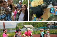 Сегодня в лагере день здоровья и спорта. Играли на свежем воздухе. Провели "Весёлые старты"