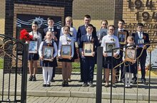 Сегодня учащиеся и учителя присоеденились к акции "Бессмертный полк"