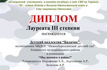 Тәрбияче А.Х. "Күпме яу, сугышлар аркылы, Син җиңеп чыккансың ,Ватаным!" район укуларында 2 дәрәҗә дипломга лаек булды. 28.03.2025