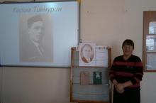 Түбән Көек урта гомуми белем бирү мәктәбендә китапханәче Шәрәфиева Гөлфия драматург Кәрим Тинчуринның тууына 125 ел тулу уңаеннан кичә уздырды.