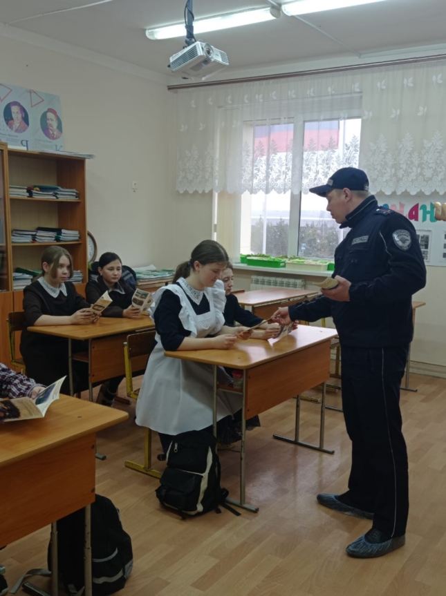 Госинспектор БДД ОГИБДД Мугтазиров Ренат Радикович напомнил учащимся о правилах дорожного движения и предоставил памятки.