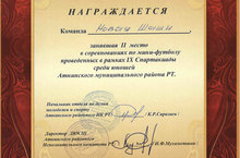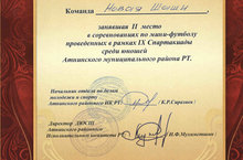 Яңа Шашы урта мәктәбенең яшүсмерләр командасы IX Спартакиадасы кысаларында үткәрелгәнрайонкүләм ярышларда мини-футбол буенча II урын алды! АФӘРИН, егетләр! Җыелма команданың иң яшь уенчысы, 5 сыйныф укучысы Сабирҗанов Сәйдәшкә 12 яшь кенә булуын исәпкә алсак, җиңүче командаларга уйланырга җирлек бар...