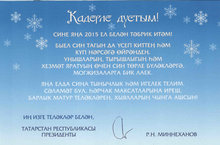 Һәрбер укучы бүген Яңа ел бүләкләре белән бергә Татарстан Президенты Рөстәм Нургали улы Миңнехановның котлау открыткаларын алды.