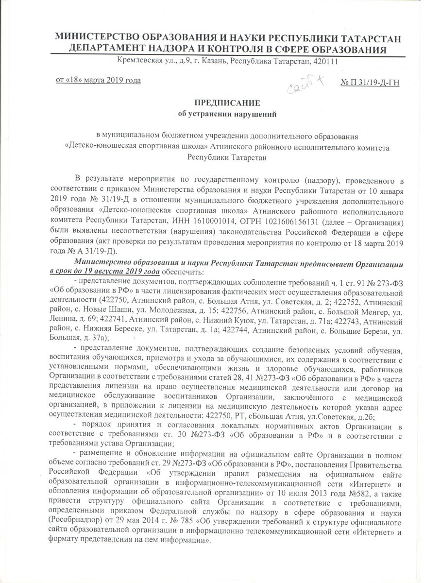 Предписания органов, осуществляющих государственный контроль (надзор) в сфере образования