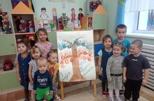 В честь дня народного единства и дружбы дети с воспитателем трудились над созданием коллективной работы "Дерево дружбы"