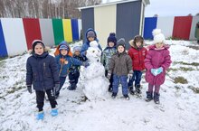 Кечкенәләр төркеме белән дә Кар бабай ясадык./С младшей группой слепили Снеговика 15.11.2021