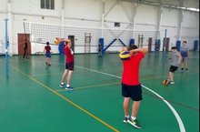 Практическое занятие в объединении "Волейбол". Обучающиеся отрабатывают технику приёма мяча сверху.