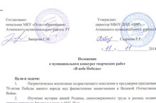 Положение муниципального конкурса творческих работ "В НЕБЕ ПОБЕДЫ" 13.11.2014