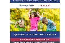 Республиканское родительское интернет-собрание. Во исполнение плана работы Министерства образования и науки Республики Татарстан 25.01.2019 с 12.30 до 14.00 состоится Республиканский родительский интернет-семинар «Здоровье и безопасность ребенка». Он-лайн трансляция собрания будет вестись на сайте Казанского инновационного университета имени В.Г.Тимирясова по адресу: https://ieml.ru/. 25.01.2019