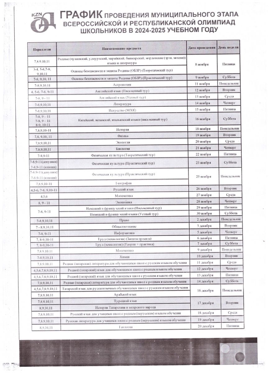 График проведения муниципального этапа Всероссийской олимпиады школьников