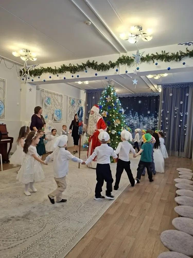 Атмосфера праздника царила во всех группах всю предновогоднюю неделю, и проведённый утренник окунул всех в сказку. И, конечно, кульминацией утренника была встреча с главными героями праздника – Дедом Морозом и Снегурочкой.