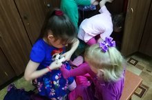 В нашем детском саду реализуется технология эффективной социализации "Дети-волонтеры", которая предполагает помощь старших дошкольников младшим. Педагоги помогают старшим ребятам научить малышей играть в различные игры, рисовать, одеваться.