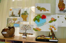 Во всех группах сегодня открыта настоящая выставка творческих работ детей и их родителей, которая называется "Разноцветная осень".