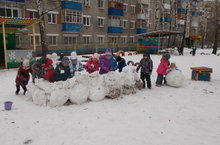 Когда рядом крутятся малыши, всегда хочется заняться чем-то творческим. А на прогулке сейчас для детского творчества есть и подручный материал - снег. Вот и смастерили сегодня дети из подготовительной группы снежную крепость, чтобы наш любимый детский сад от невзгод охранять.