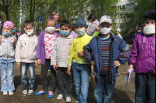 В этот солнечый день 14 мая 2013 года в нашем детском саду прошли учения по ГРАЖДАНСКОЙ ОБОРОНЕ.Услышав тревожную сирену, все сотрудники и воспитанники быстро покунули помещение и построились за территорией детского сада. Наш завхоз отрапортовала заведующему, что все построены, в здании никого не осталось, пострадавших нет. Мы еще раз все поучились быстро реагировать на сигнальную сирену и быстро одеваться.