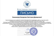КФУ выражает благодарность классному руководителю Назаровой С.Д. и её ученикам за активность и высокие достижения! Желаем вам дальнейших успехов в учёбе и новых побед!