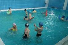 Лингвистический отряд пришкольного лагеря всегда в движении! Каждое утро начинается спортивно: учащиеся вместе с тренером Козяковой Ириной Борисовной учатся плавать, закрепляют умения, играют в водные игры в бассейне.