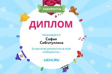Поздравляем ученицу 1 Б класса Сибгатуллину Софию с высокими результатами в играх "Лабиринт", "Переливалки" на платформе "Учи.ру" и похвальными листами в Онлайн-олимпиадах по математике.