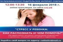 16 февраля 2018 г. с 12.00 до 13.30 пройдет Республиканское родительское интернет-собрание на тему "СТРЕСС У РЕБЕНКА: КАК РАСПОЗНАТЬ И ЧЕМ ПОМОЧЬ?"