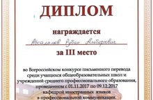 Всероссийский конкурс письменного перевода с английского языка на русский (10 Г) 12.12.2017