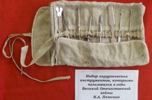 Перед вами-небольшой набор стандартных хирургических инструментов. Этот набор необычен тем, что он побывал в одном их самых тяжелых боев Великой Отечественной -сражении за Москву.