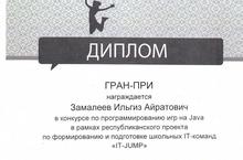 Обладателей Гран-при конкурса по программированию игр на Java республиканского проекта по формированию и подготовке школьных IT-команд "IT-Jump" учащихся 9 Б класса