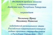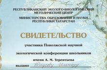 16-17 февраля в Казани на базе школы № 150 Приволжского района проходит научная экологическая конференция школьников имени А.М. Терентьева, в котрой принимают участие учащиеся лицея Чекменева Ирина, Махотина Наталья, Юнусов Ильнвз. Лицеисты представляют компетентному жюри свои разработки в области охраны окружающей среды-запатентованные устройства для очистки сточных вод и каталитического дожига газовых выбросов. Желаем удачного выступления!