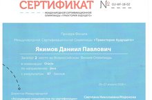 На прошлой неделе ученик 10в класса Якимов Данил ездил в Москву для участия в Финале Международной Сертификационной Олимпиады "Траектория будущего".