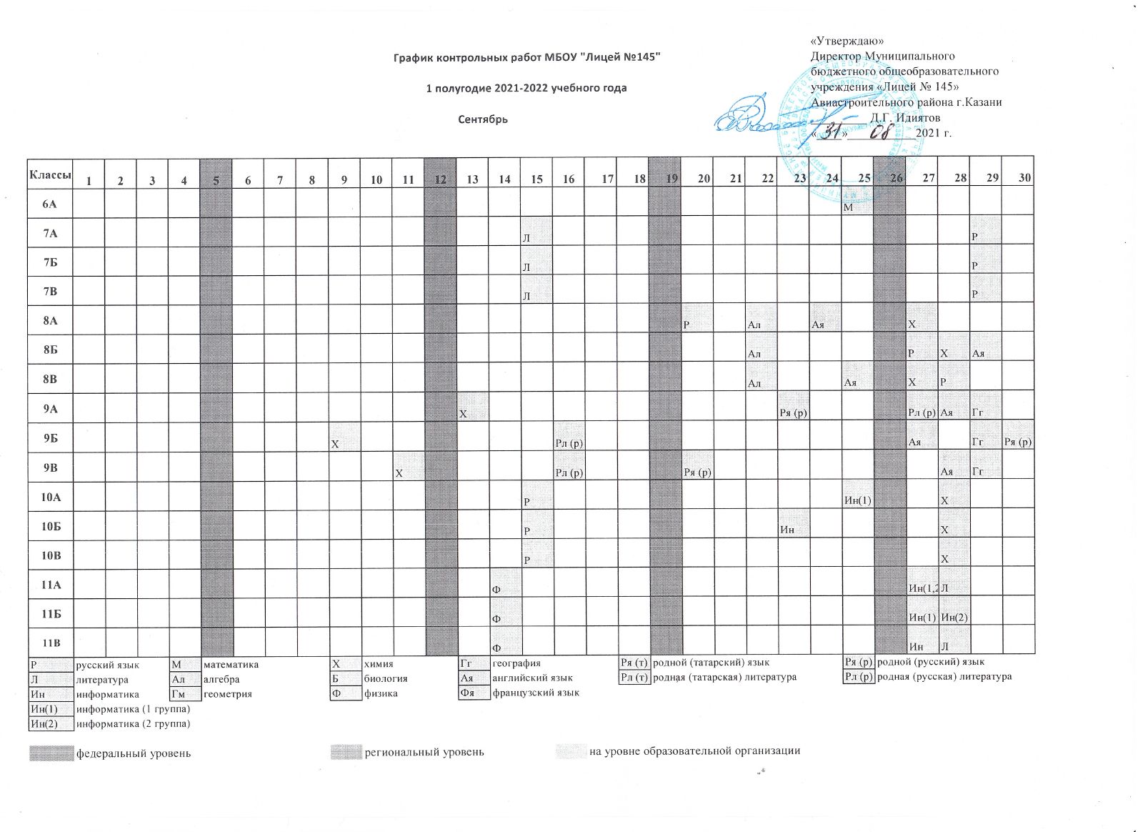График контрольных работ на I полугодие 2021-2022 учебного года