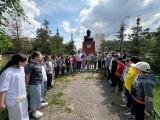 Ребята из пришкольного лагеря "Радуга" возложили венок к памятнику Героя Советского Союза Мусы Джалиля. После этого дети читали наизусть стихотворения на военную тематику и рассказывали истории о своих родственниках, которые участвовали в Великой Отечественной войне.