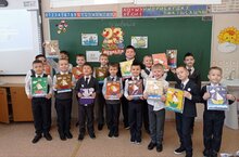 Актив школы вместе с классным руководителем 1А класса Шарафиевой Г.П. мастер-класс по созданию открыток для пап.