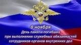 День памяти погибших при исполнении служебных обязанностей сотрудников органов внутренних дел Российской Федерации8 ноября отмечается День памяти погибших при выполнении служебных обязанностей сотрудников органов внутренних дел Российской Федерации в соответствии с приказом Министерства внутренних дел Российской Федерации от 17 марта 2017 года № 135 «Об установлении Дня памяти погибших при выполнении служебных обязанностей сотрудников органов внутренних дел Российской Федерации». Ранее, в соответствии с приказом Министерства внутренних дел Российской Федерации от 26 октября 2011 года № 1101«Об установлении Дня памяти погибших при исполнении служебных обязанностей (обязанностей военной службы) сотрудников органов внутренних дел Российской Федерации и военнослужащих внутренних войск МВД России», этот день назывался Днем памяти погибших при исполнении служебных обязанностей (обязанностей военной службы) сотрудников органов внутренних дел Российской Федерации и военнослужащих внутренних войск МВД России.