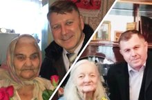 8 марта админстрация лицея поздравила ветеранов и труженников тыла с международным женским днем. На фото(слева) Потапова Мария Ивановна и заместитель директора Тимергалеев Н.Б., (справа) узница концлагеря Новикова Марина Сергеевна и директор лицея Тухфатуллов Н.Р.