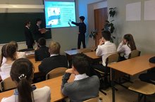 В гости в лицее пришла директор КДЦ "Авиастроительного района Нурина Лилия Сарваровна, которая выступила перед старшеклассниками на тему "почему люди работаю?"