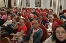 Воспитанники летнего пришкольного лагеря "РАДУГА" посетили ТЮЗ г. Казани. Дети с удовольствие посмотрели спектакль "Молодильные яблочки"