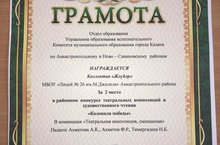 Коллектив «Жәуhәр" МБОУ «Лицей 26 им. М.Джалиля» Авиастроительного района занял 2 место в районном конкурсе театральных композиций и художественного чтения «Колокола памяти», приуроченного к 74- летию Великой Победы. Поздравляем!
