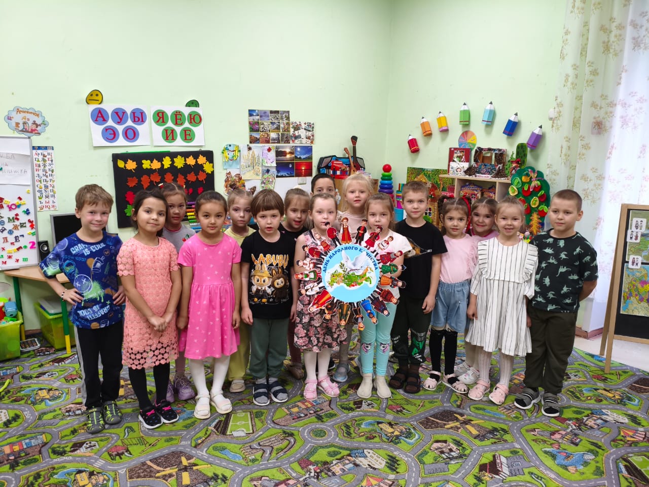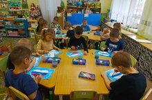 В рамках реализации проекта "День народного единства" воспитанники подготовительной к школе группы "Сказка" вместе с воспитателем Кравец Еленой Николаевной изготовили эмблему "День народного единства"