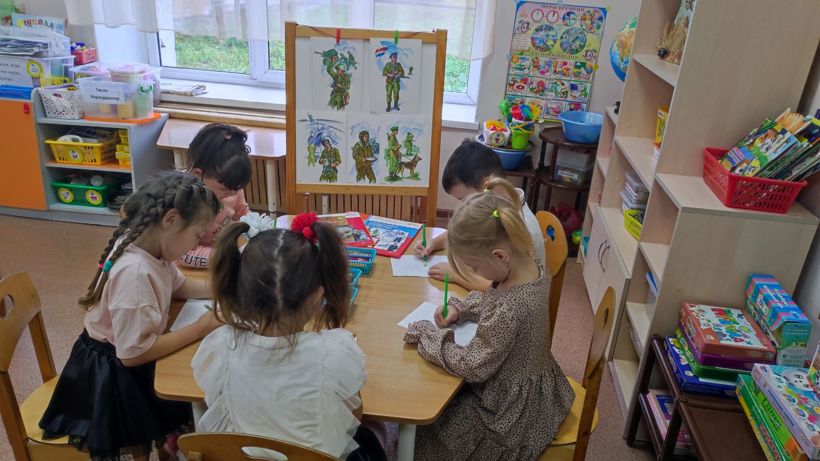 Воспитатель старшей группы "Капитошка" Романова Ю.В. большое внимание уделяет патриотическому воспитанию детей. Занятие по рисованию на тему "Солдат на посту" способствовало формированию у её воспитанников чувства гордости и уважения за Российскую армию. -