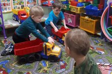 В процессе игровой деятельности с машинками, наши малыши знакомятся с профессией водителя, расширяют и обогащают представления о трудовых действиях, учатся общаться.