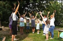 Детско-родительские тренинги в нашем детском саду проходят не только в помещении, но и на природе. На сегодняшнем занятии наши малыши побывали в Австралии. Было очень много интересного, а особенно понравился родителям и детям "Австралийский дождь".