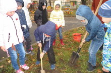 В рамках экологической Всероссийской акции по посадке деревьев "Я выбираю лес" сегодня в детском саду была организована посадка деревьев. А дети подготовительной группы вместе с воспитателем Федотовой О.В. посадили проросшие желуди. Вырастут из желудей дубочки.