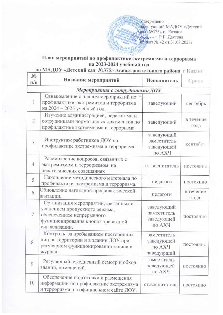 План мероприятий по профилактике экстремизма и терроризма на 2023-2024 уч г