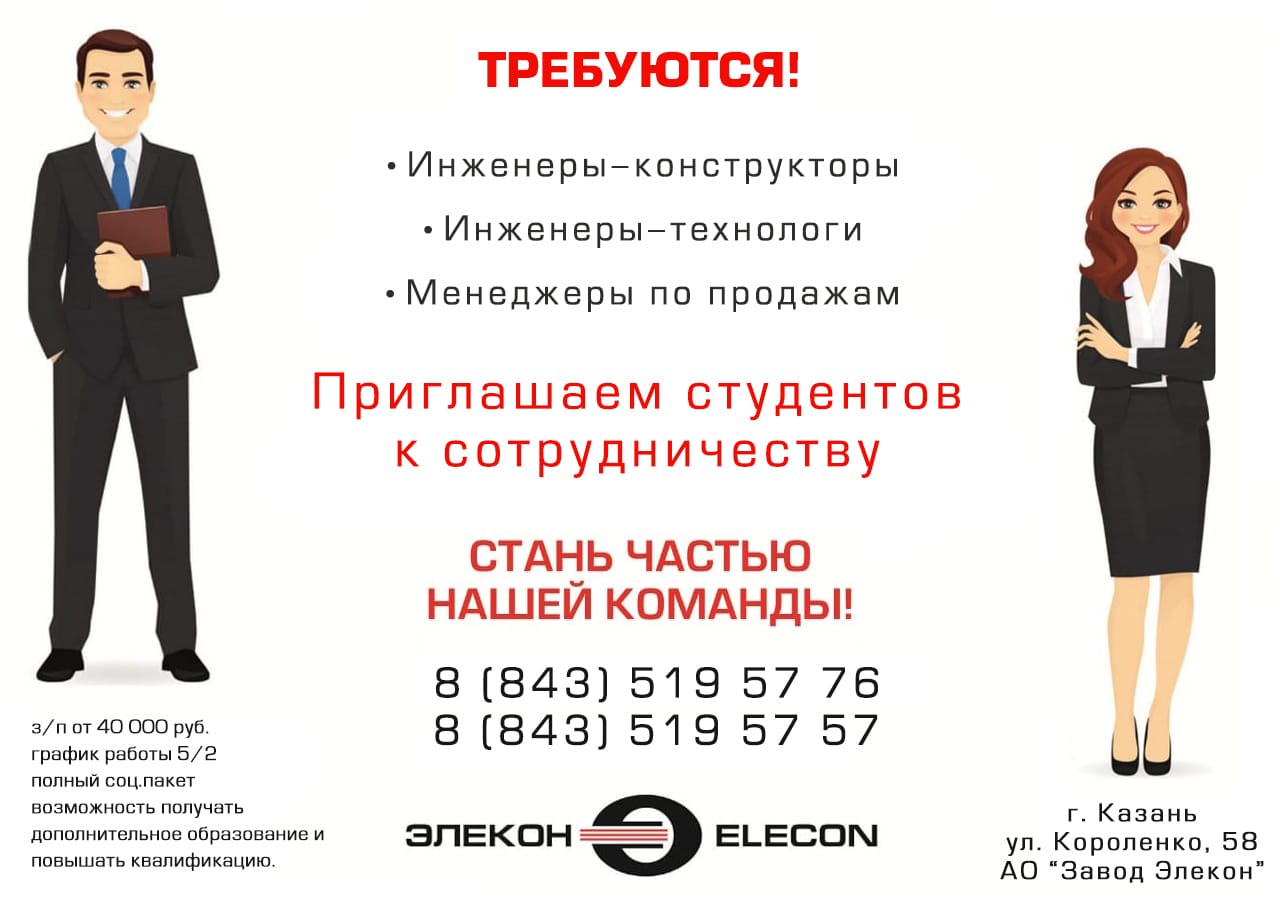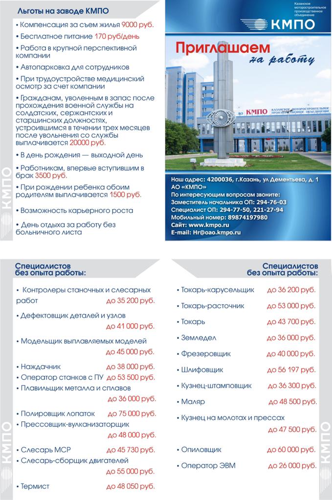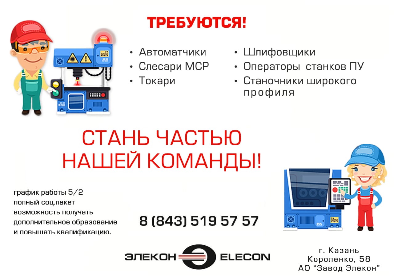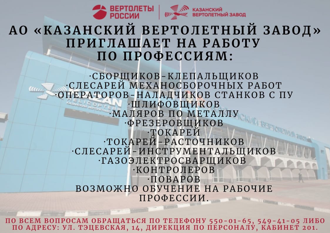 Внимание,имеются вакансии на АО Казанский вертолетный завод,АО завод Элекон,АО завод Элекон,АО КМПО, КАЗ им.С.П. Горбунова -филиал ПАО"Туполев"