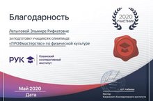 8 мая 2020 года состоялась дистанционная Олимпиада «ПРОФмастерства» по физической культуре, где студентка нашего колледжа Ахмадуллина Альфия, группа 18Т1, под руководством преподавателя Латыповой Эльмиры Рифкатовны приняла участие и заняла призовое III место.